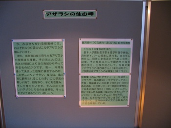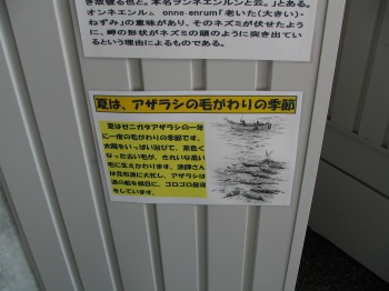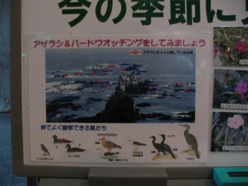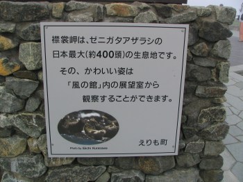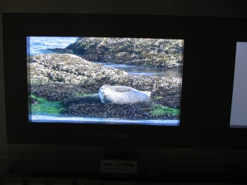 霧をいつまで見てても仕方がないので岬の施設の風の館という所に入りました。ゼニガタアザラシの資料もありました。ゼニガタアザラシ観察用スペースもあ り、望遠鏡も置いてありました。晴れたら寄りたいところですね。