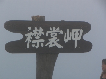 霧の中の襟裳岬の案内板