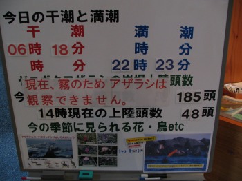 風の館内の「霧のためアザラシは観察できません」の案内板、14時には観察できたのかな。
