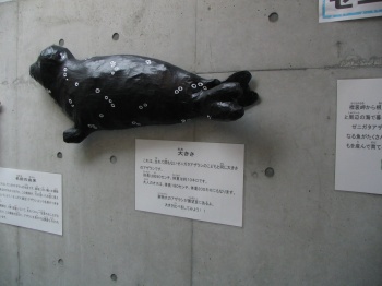 風の館内にあったゼニガタアザラシの実物大パネル。