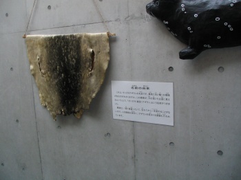 吊るされていたアザラシの毛皮。触ることもできます。